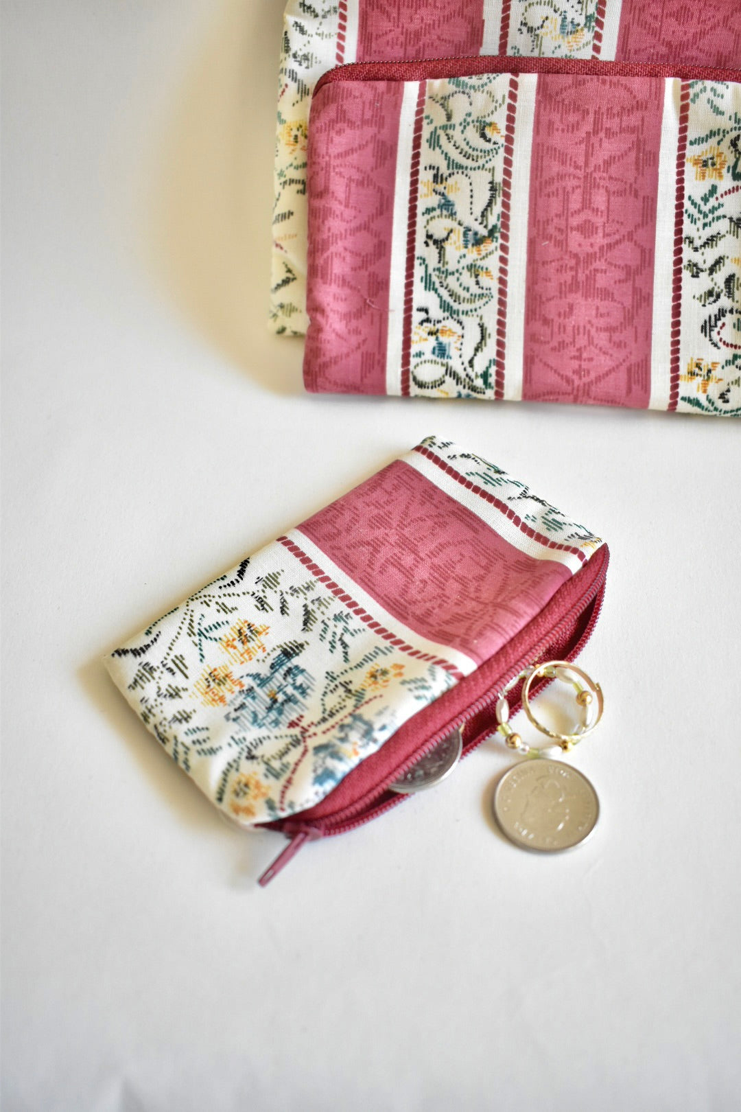 - set of 3 vintage fabric zippered pouches, decreasing sizes